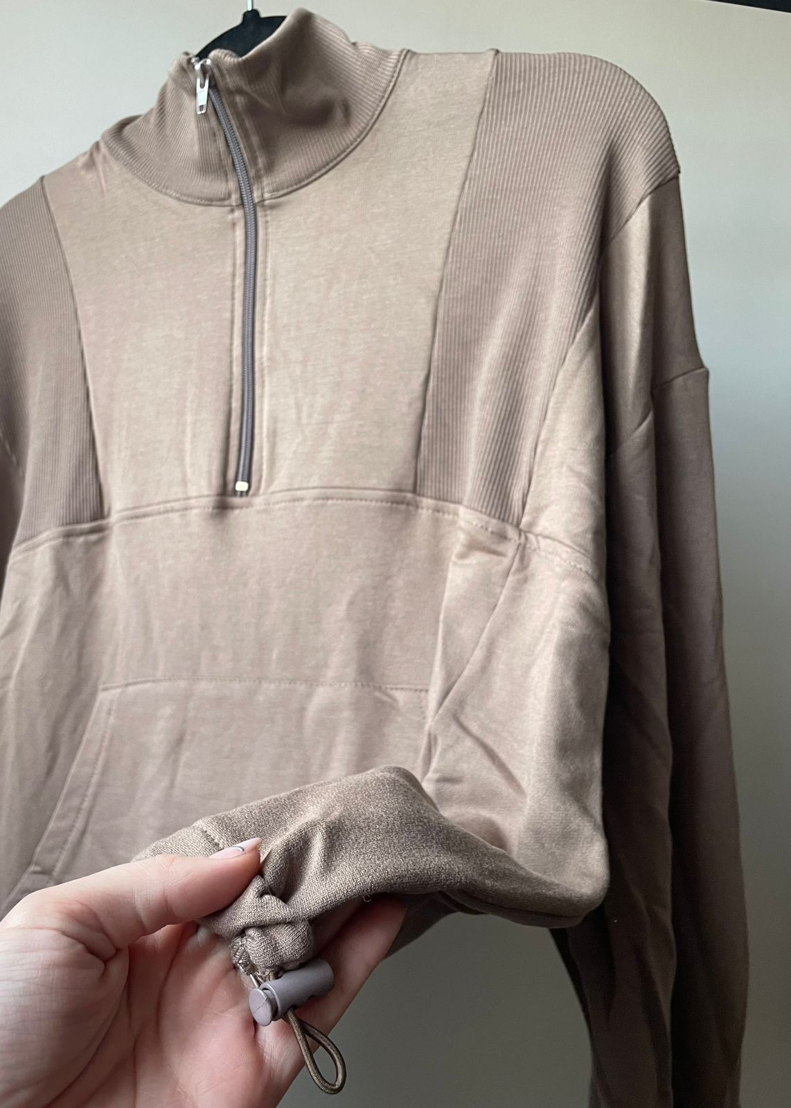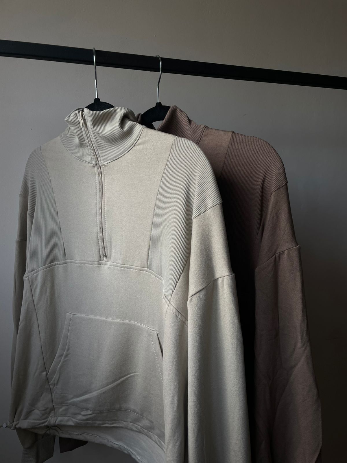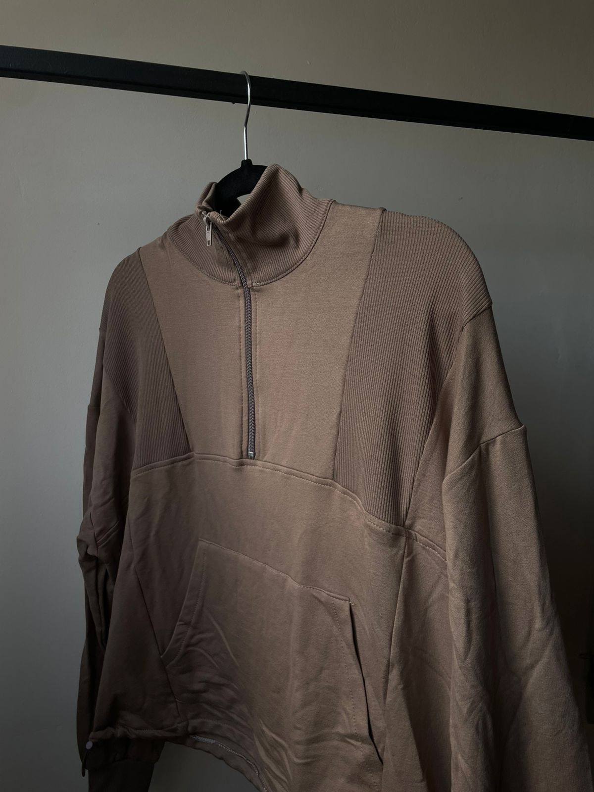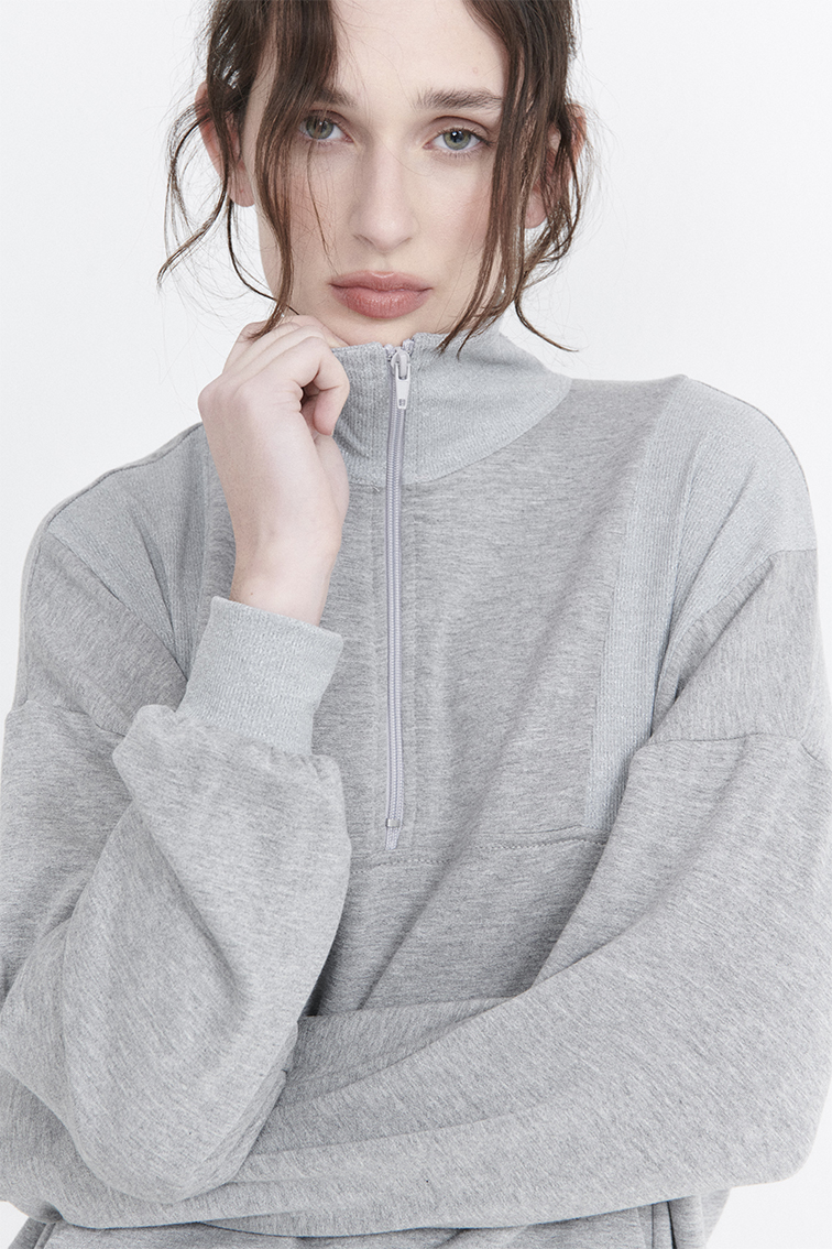 Buzo cuello alto con cierre y recortes.
